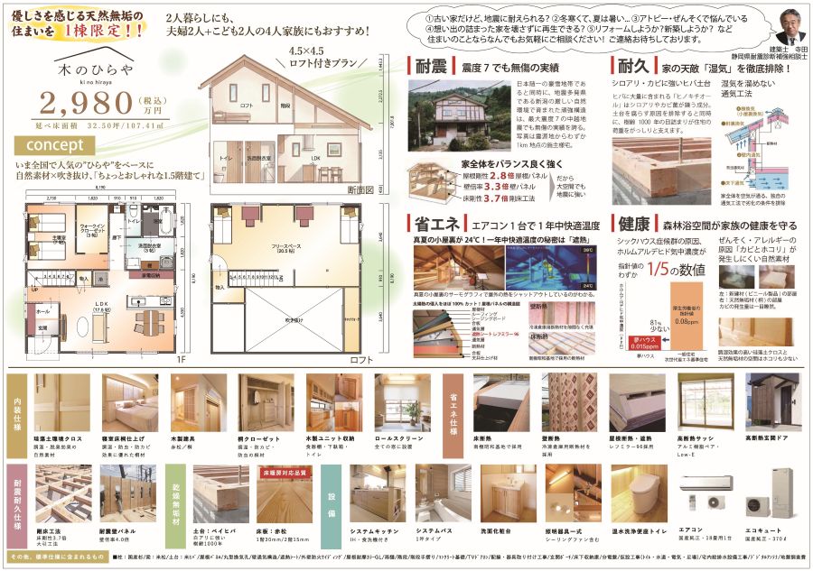 自然素材×吹き抜けのちょっとおしゃれな1.5階建て